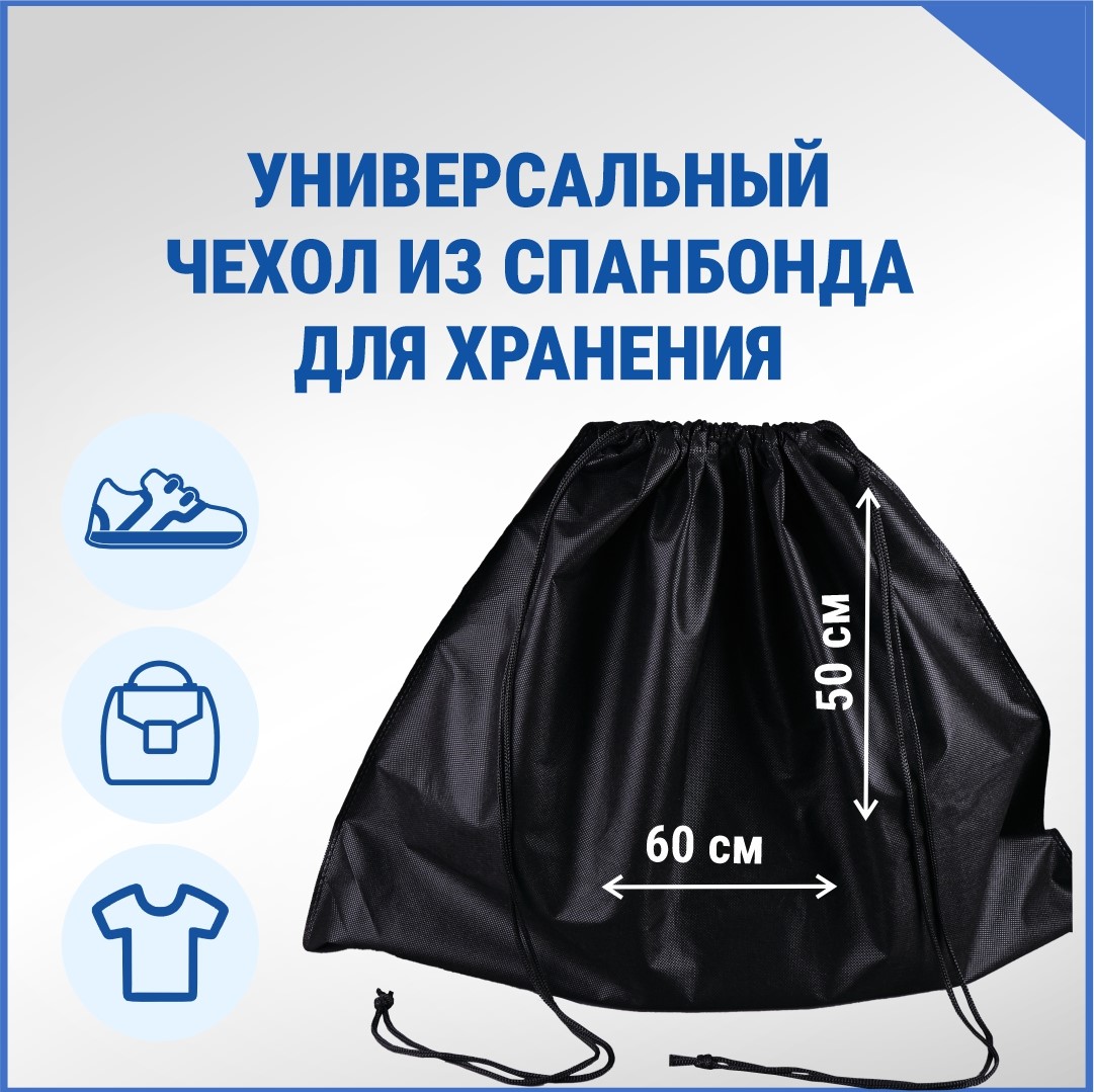 Многоразовый, универсальный чехол из нетканого материала с ультразвуковой спайкой швов. Мешок из спанбонда приятный на ощупь, легкий и компактный.